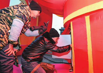 工作人員在巡查花燈電路,確保電力運(yùn)行穩(wěn)定。