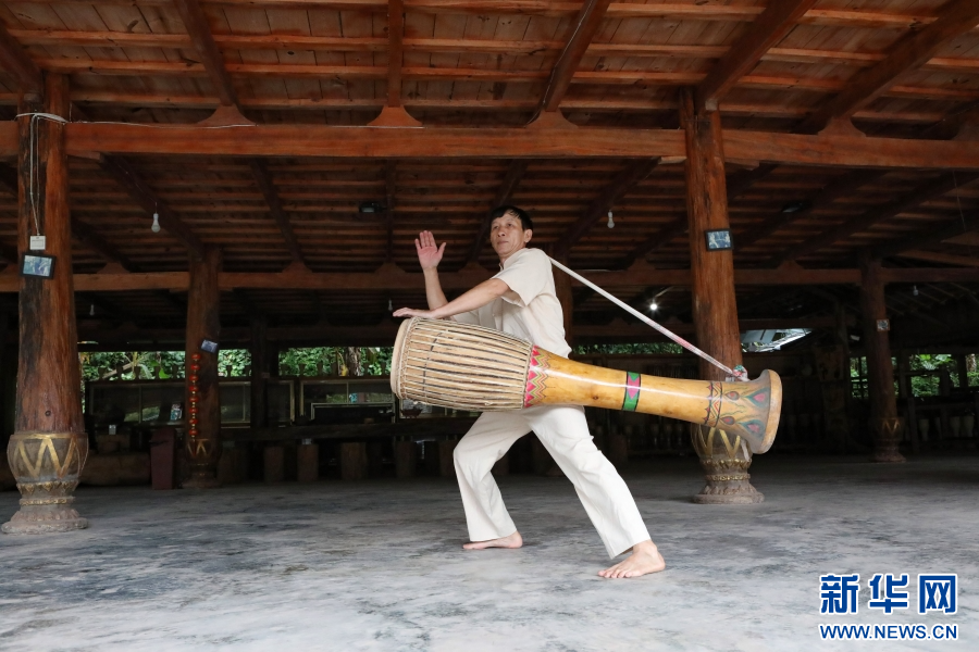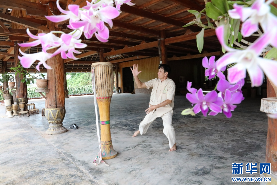 8月16日,波罕丙正在練習象腳鼓舞。新華網(wǎng)發(fā)(李云生 攝)