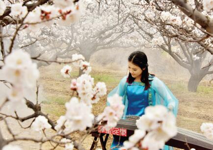 在近日舉辦的繁峙趙莊杏花節(jié)上,一名身穿古裝的女子正在杏花爛漫的杏園里進(jìn)行古箏彈奏表演。近年來(lái),作為全國(guó)“一村一品”示范村的繁峙縣趙莊村,種植杏樹(shù)面積達(dá)5200畝。去年,全村出售白水大杏樹(shù)苗40 萬(wàn)株、白水大杏150 萬(wàn)公斤,總收入達(dá)800 多萬(wàn)元,人均年收入達(dá)到13000 元。(喬偉 攝)