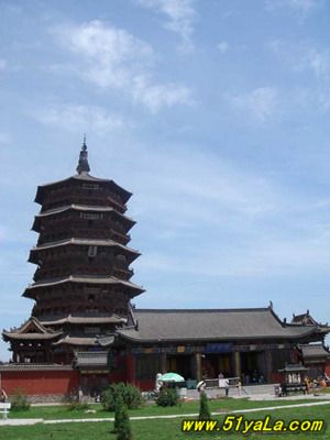 應(yīng)縣木塔佛宮寺釋迦塔位于山西省應(yīng)縣城內(nèi)西北佛宮寺內(nèi)。俗稱應(yīng)縣木塔。塔總高67.31米,是我國現(xiàn)存時代最早的木結(jié)構(gòu)高層建筑.佛宮寺釋迦塔建于后晉天福年間,遼清寧二年(1056年)重修。