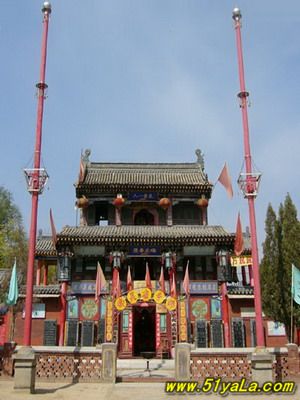 鹿蹄澗楊令公祠占地一萬二千平方米,祠對面樓臺三間為祭臺,上有“頌德樓”題匾;調(diào)堂門前筑臺階二十四級,階下有石獅一對蹲踞左右。祠門三間,每間前檐各懸金字巨匾一面,中書“奕世將略”,左書“一堂忠義”,右書”三晉良將”。門楣上立一盤龍藍底大匾,上有“忠武祠”三個金字。“忠武”乃楊業(yè)戰(zhàn)死后,宋太宗皇帝給予他謚號。
