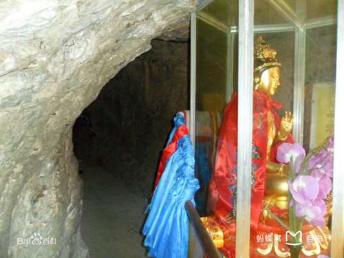 千佛洞,分內(nèi)外兩洞,外洞大而明,內(nèi)洞小而幽,中間有一個扁圓形孔穴相通。內(nèi)洞中,可以容納五至七人。內(nèi)洞的洞壁上,山巖經(jīng)水溶化,產(chǎn)生許多乳石及石筍,夾有各種色質,猶如人體心肝五臟,洞形又呈葫蘆形狀,后人便稱之為母腹。佛教宣揚進入小洞就是投胎佛母,受其恩育,復出小洞就是洗掉人生一切煩惱,獲得無上歡樂幸福。