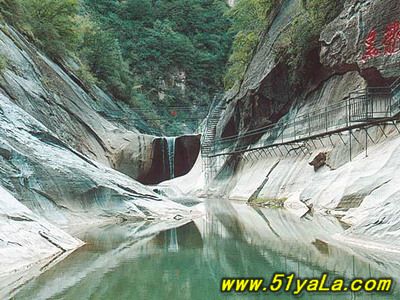 五指峽中的黑龍?zhí)端浅G宄?,終年流淌不息,在這個還有一個很有趣的說法,據(jù)說每到大旱的時刻人們就到這幾來求雨,但是求雨的人一定要是屬龍和蛇的,因?yàn)槭刈o(hù)著黑龍?zhí)兜氖且粭l黑龍。清澈的山澗為來到這里的人們帶來了快樂。游人可以泛舟水上,進(jìn)行皮筏漂流。