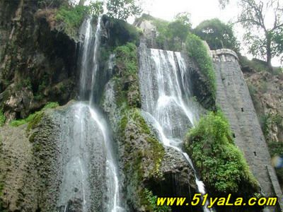 娘子關(guān)瀑布也名飛泉,位于娘子關(guān)城堡東門附近約300米的妒女祠下,因臨娘子關(guān)而得名。