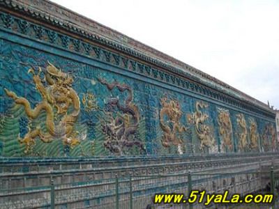 馳名中外的大同九龍壁,在我國(guó)現(xiàn)存最享盛名的三座九龍壁中,是建筑年代最早、尺度最大、而又最富藝術(shù)魅力的一座。(另兩座在北京,一座在北京北海公園,一座在北京故宮皇極門(mén)前,均建于清乾隆時(shí)代。較大同九龍壁要晚三百五十至四百年。)