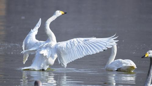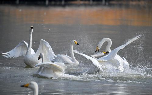 隨著天氣逐漸轉(zhuǎn)暖,在平陸黃河濕地越冬的白天鵝迎來北遷高峰,返回西伯利亞。平陸黃河濕地是國內(nèi)白天鵝越冬地之一,每年到此越冬的白天鵝數(shù)量在1萬只左右。薛俊 攝影報道