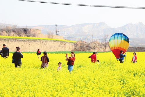 3月28日,運(yùn)城市鹽湖區(qū)三路里鎮(zhèn)桃花盛開,油菜花綻放,層層梯田美不勝收,處處美景醉游人。