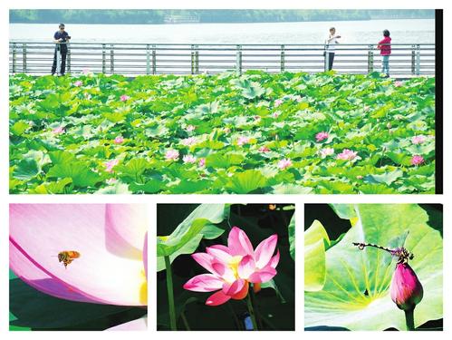 7月1日,太原汾河景區(qū),游人正在盛開的荷花前拍照。近日,太原汾河景區(qū)內(nèi)的荷花漸次盛開,長風(fēng)商務(wù)區(qū)躋汾橋下荷花塘內(nèi)近萬株荷花競相開放、花香四溢,吸引了眾多市民和攝影愛好者前來賞花、創(chuàng)作。本報(bào)記者 李兆民攝