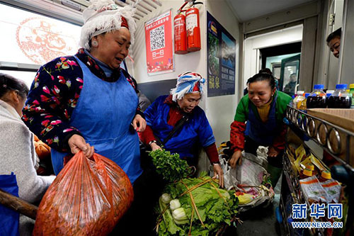 1月27日,乘客在5639次列車上賣菜。 由貴州玉屏開往貴陽的5639次列車是輛綠皮“慢火車”。沿途群眾每天挑著籮筐上車,將自家出產(chǎn)的農(nóng)作物帶到貴陽、凱里等地販賣,再坐著火車把生產(chǎn)資料和日用品帶回家。時(shí)間一長,不少乘客直接在列車上買賣貨物。春節(jié)將至,蔬菜水果等農(nóng)產(chǎn)品交易較往日更加紅火,列車上的“年貨市場(chǎng)”洋溢著濃濃年味。 新華社發(fā)(許毅 攝)