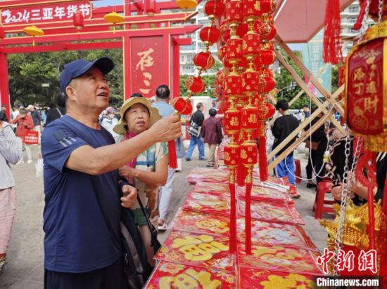 1月27日,“在三亞 過大年”2024三亞年貨節(jié)主會(huì)場(chǎng)開幕,喜慶熱鬧的年味氛圍吸引眾多市民游客,圖為民眾選購(gòu)年貨。張?jiān)潞?攝