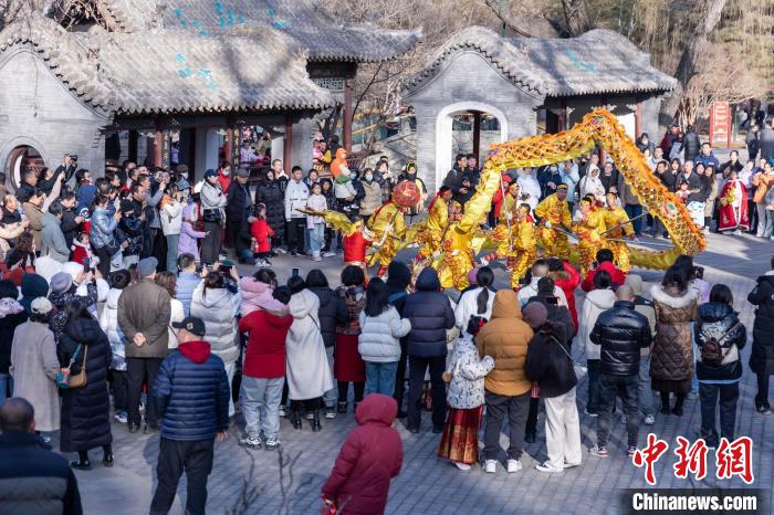 太原晉祠博物館舉行舞龍活動。晉祠博物館 供圖 其中,晉祠博物館接待游客128618人次,晉祠公園接待游客199612人次,晉商博物院接待游客60707人次,太原市博物館接待游客43568人次,這些文博機構(gòu)較同期均有兩至三倍的增長。開館不久的北齊壁畫博物館和晉陽古城考古博物館在開放后的首個春節(jié)假期,游客數(shù)量分別達到10284人次和12137人次。 春節(jié)期間,太原市文物局各直屬單位共推出101項線下文博活動以及45項線上系列活動,結(jié)合春節(jié)傳統(tǒng)文化以及民俗文化,吸引各地游客前來“打卡”。