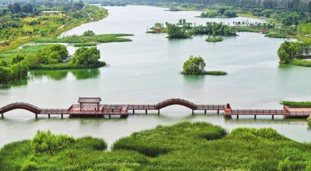 6月29日拍攝的太原汾河景區(qū)四期,郁郁蔥蔥的植被、清澈的河水、自由嬉戲的飛鳥,共同構(gòu)成了一幅生機(jī)勃勃的生態(tài)畫卷。盛夏時(shí)節(jié),太原汾河景區(qū)四期空氣清新,花香四溢,吸引眾多市民前來游玩。