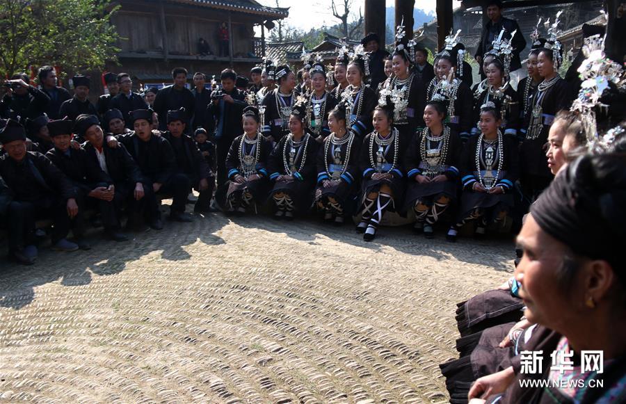 2月17日,貴州省黔東南苗族侗族自治州黎平縣巖洞鎮(zhèn)述洞村開展一年一度的“鼓樓之宗”活動(dòng)。侗族老人在當(dāng)?shù)刈罟爬系墓臉恰冀ㄓ诿鞔莫?dú)柱鼓樓講述侗族遷徙歷程,告誡大家要敬老尊賢、和睦相處、團(tuán)結(jié)友善,侗族青年男女身著節(jié)日盛裝圍著鼓樓一邊踩歌堂,一邊唱遷徙古歌,之后在鼓樓旁進(jìn)行“侗族大歌”對(duì)唱,感懷族群遷徙的歷史,傳承傳統(tǒng)文化。新華社發(fā)(楊代富 攝)
