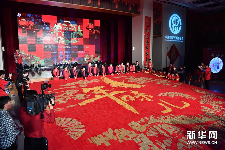 1月11日,“尋找曾經(jīng)的年味兒”全國大型公益行動在北京中國婦女兒童博物館啟動,通過發(fā)放年味兒畫冊、舉辦年味兒趣味活動,弘揚(yáng)傳統(tǒng)文化,同時為貧困家庭、醫(yī)護(hù)工作者送去問候與關(guān)愛?;顒又?,由近6萬個紅包拼鋪而成的64平方米“最大紅包拼圖”載入吉尼斯世界紀(jì)錄。春節(jié)期間,北京、濟(jì)南、石家莊、鄭州、哈爾濱等五座城市都將開展尋找年味兒的相關(guān)活動。新華社記者 李鑫 攝