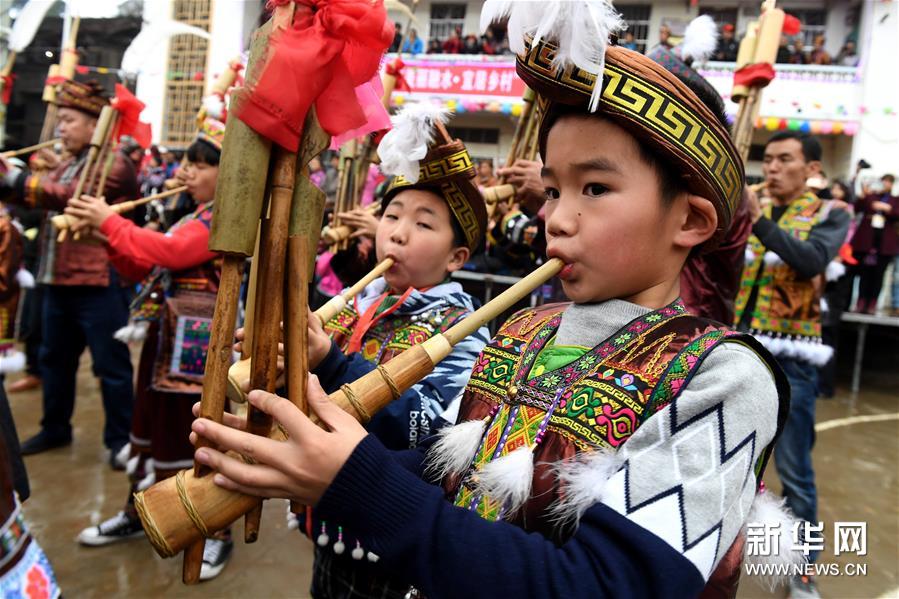 2月7日,廣西融水苗族自治縣安太鄉(xiāng)苗族群眾開展傳統(tǒng)的“打同年”民俗活動。當(dāng)?shù)財(cái)?shù)百名苗族同胞與游客們歡聚一堂,一起開展對歌、蘆笙踩堂、文藝晚會等活動,歡慶新春佳節(jié)。 “打同年”是融水苗族村寨的一種民俗,即友好村寨之間的拜年聯(lián)歡活動。新華社記者 李斌 攝