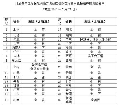 據(jù)人力資源和社會(huì)保障部網(wǎng)站消息,目前全國(guó)跨省異地就醫(yī)住院醫(yī)療費(fèi)用直接結(jié)算聯(lián)網(wǎng)接入工作順利推進(jìn)。截至7月21日,全國(guó)31省份和新疆生產(chǎn)建設(shè)兵團(tuán)均接入國(guó)家異地就醫(yī)結(jié)算系統(tǒng),開通390個(gè)地區(qū),占97.5%。截至7月19日,開通4055家跨省異地就醫(yī)住院醫(yī)療費(fèi)用直接結(jié)算定點(diǎn)醫(yī)療機(jī)構(gòu)。