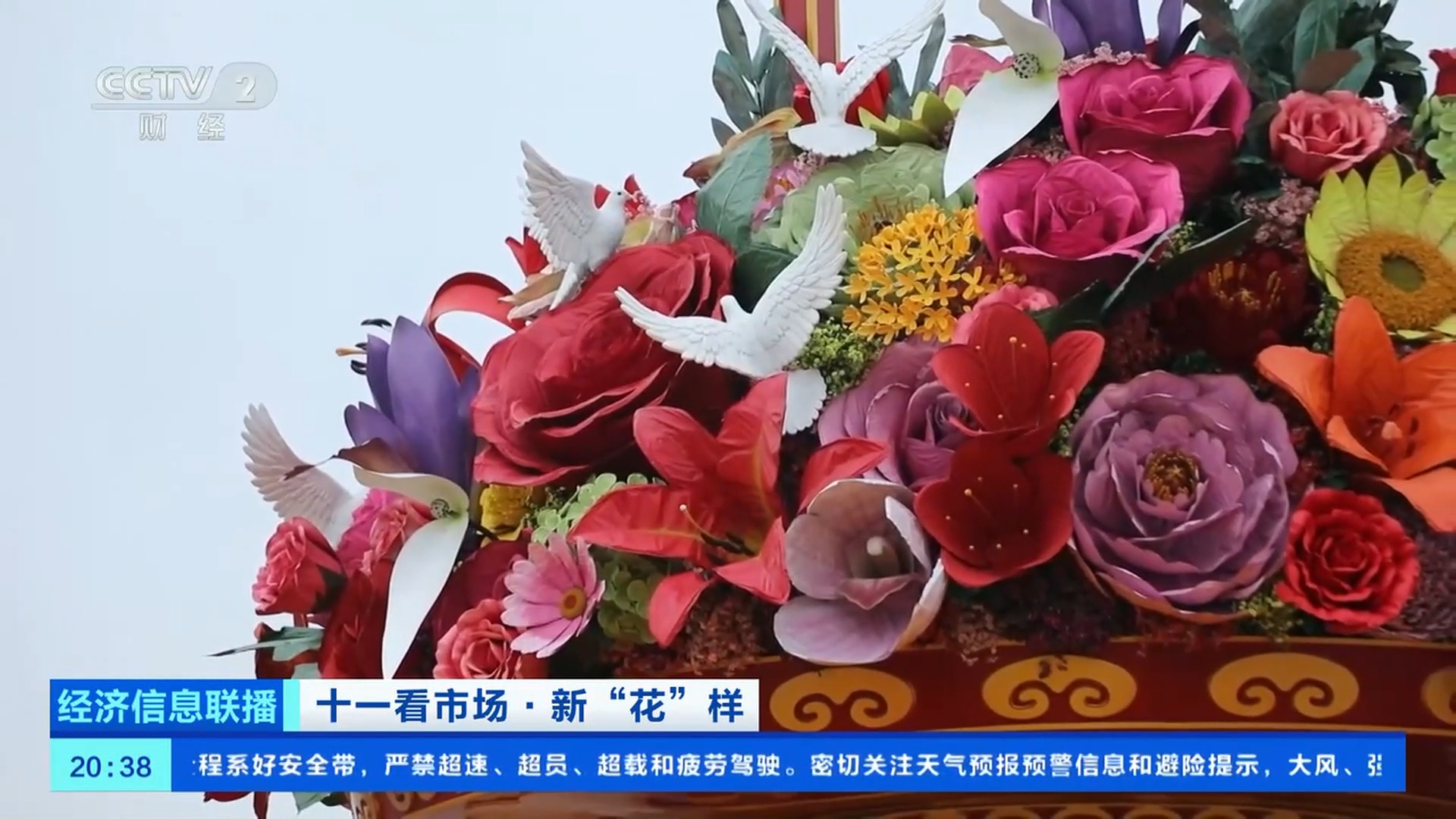 天安門花壇總工程師 張先哲:在天安門廣場我們要抗12級風(fēng),這些大型的花朵要在大風(fēng)中巋然不動,依然要保持它良好的面貌,所以我們用的大型仿真花比較多。今年,這些花朵的大小和色彩做得更加精致自如,比如鳶尾花花瓣用了彩繪,讓它的細節(jié)、紋理、顏色更加逼真。大花籃里的山丹丹、鴿子花,用的雕塑工藝,是用一些不銹鋼板敲制出來的。