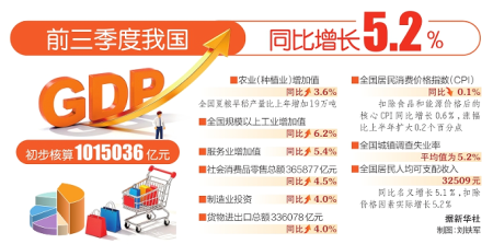 前三季度我國(guó)GDP同比增5.2%