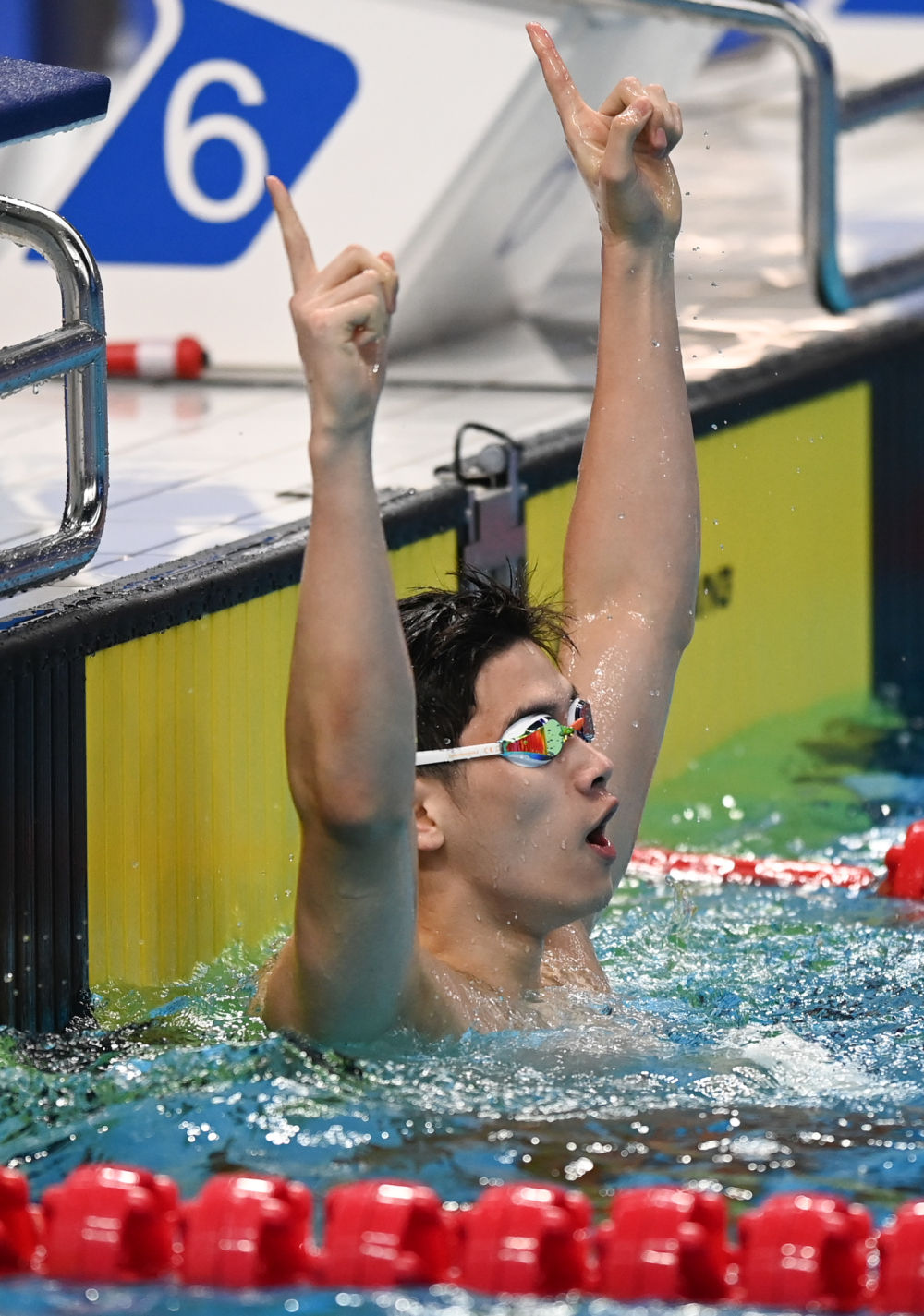 繼首個(gè)比賽日在男子100米自由泳決賽中超越亞洲紀(jì)錄后,潘展樂(lè)當(dāng)天又以1分44秒65奪得男子200米自由泳金牌,可列今年世界第一好成績(jī),與孫楊保持的亞洲紀(jì)錄1分44秒39相差0秒26。奧運(yùn)會(huì)男子200米混合泳冠軍汪順和浙江隊(duì)另一名選手洪金權(quán)分列第二、三位。