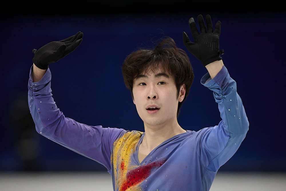 3月25日,中國選手金博洋在2023年世界花樣滑冰錦標賽男子單人滑自由滑比賽中。新華社發(fā)(帕布羅·莫拉諾攝)