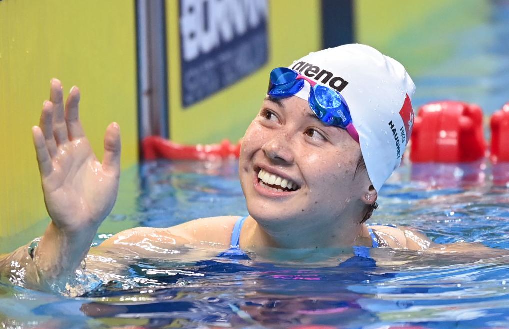 何詩蓓則以52秒02的成績改寫她9月底在杭州亞運(yùn)會創(chuàng)造的女子100米自由泳亞洲紀(jì)錄52秒17,成為該項(xiàng)目歷史上第三快的選手,她還收獲了200米自由泳金牌和400米自由泳銅牌,在積分榜列第三名。
