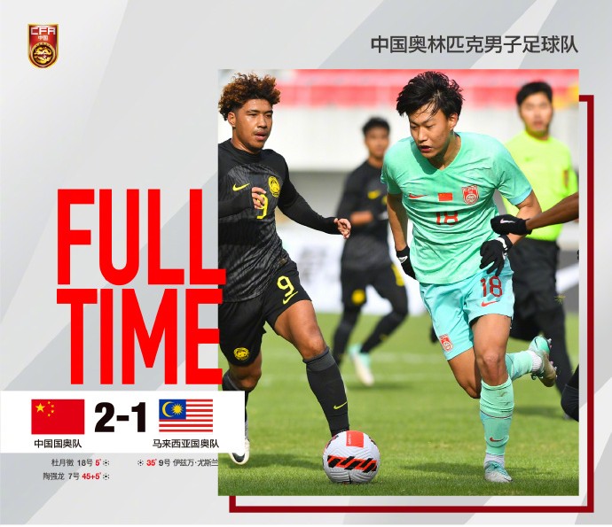 開場后,中國國奧隊就采取高位逼搶。第5分鐘,杜月徵接陶強龍開出的前場任意球破門,打破僵局。第34分鐘,巴沙遠射擊中橫梁,尤斯蘭補射破門幫助馬來西亞隊扳平比分。上半時補時階段,中國隊獲得禁區(qū)內間接任意球機會,陶強龍破門,將比分改寫為2:1。易邊再戰(zhàn),17歲小將王鈺棟替補登場,首次代表中國國奧隊參賽。雙方在下半場未取得進球,2:1的比分保持到了終場。