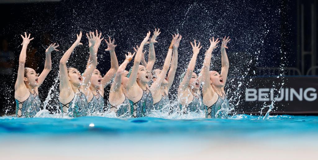 4月6日,在2024年花樣游泳世界杯(北京站)集體自由自選比賽中,中國隊(duì)以343.3479分的成績獲得冠軍。新華社記者 王麗莉 攝