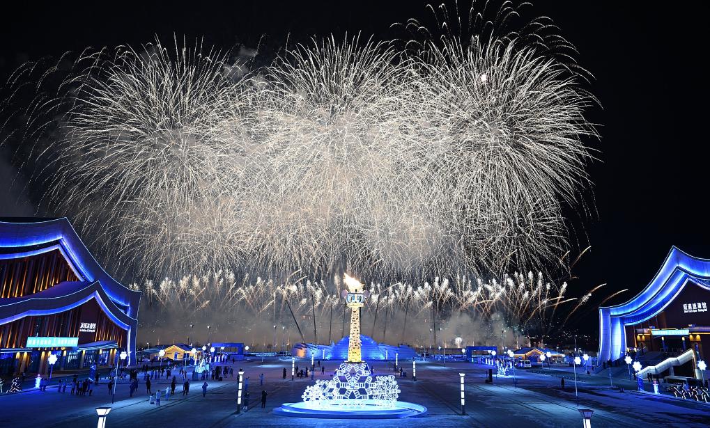 2月17日,第十四屆全國(guó)冬季運(yùn)動(dòng)會(huì)主火炬在開(kāi)幕式上被點(diǎn)燃。新華社記者 連振 攝