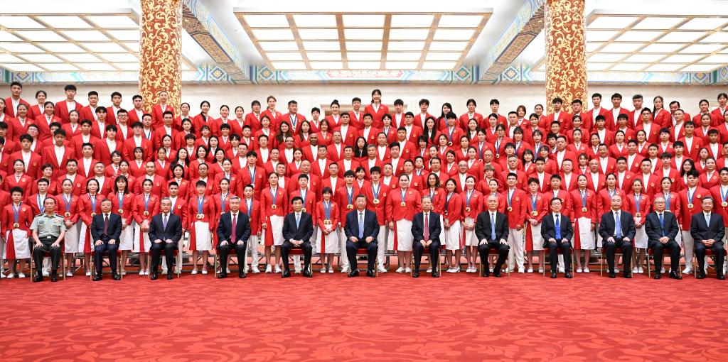 8月20日,中共中央總書(shū)記、國(guó)家主席、中央軍委主席習(xí)近平在人民大會(huì)堂接見(jiàn)第33屆夏季奧林匹克運(yùn)動(dòng)會(huì)中國(guó)體育代表團(tuán)全體成員并發(fā)表重要講話。他表示,中國(guó)體育代表團(tuán)的優(yōu)異成績(jī),既是我國(guó)體育事業(yè)發(fā)展進(jìn)步的集中體現(xiàn),也是中國(guó)式現(xiàn)代化建設(shè)成就的一個(gè)縮影,充分彰顯了新時(shí)代中國(guó)力量。
