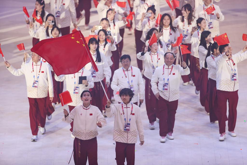 1月13日,中國大學(xué)生體育代表團(tuán)在開幕式上入場。新華社記者 李京 攝