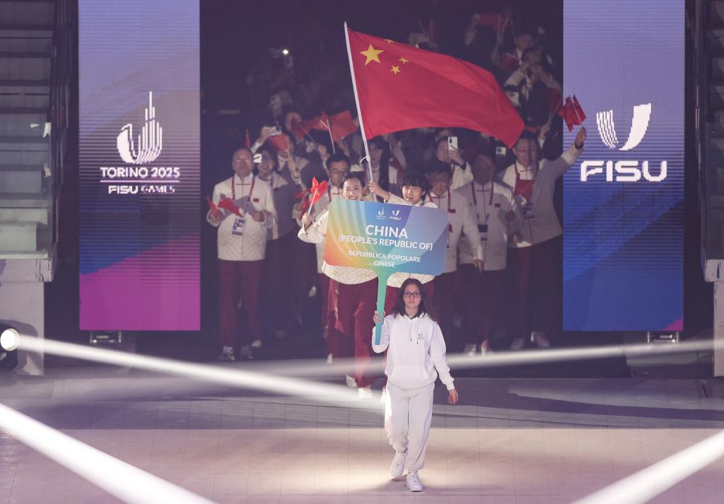 賽會(huì)開幕式于當(dāng)晚在都靈奧林匹克體育館舉行。入場儀式上,來自北京體育大學(xué)的女子冰壺運(yùn)動(dòng)員裴君杭和北方工業(yè)大學(xué)的男子高山滑雪運(yùn)動(dòng)員劉祥琪共同擔(dān)任中國代表團(tuán)旗手。