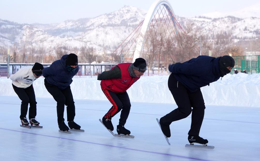 1月9日,在新疆阿勒泰市體育公園,“老飛燕”們正在滑行。新華社記者 張嘯誠 攝