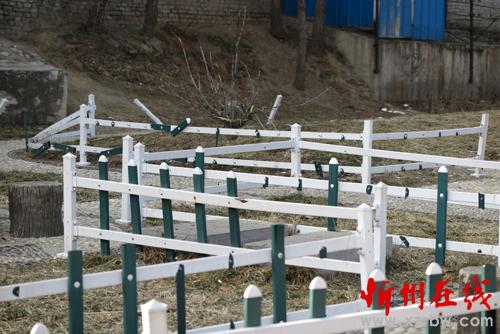 圖為慘遭破壞的花欄墻