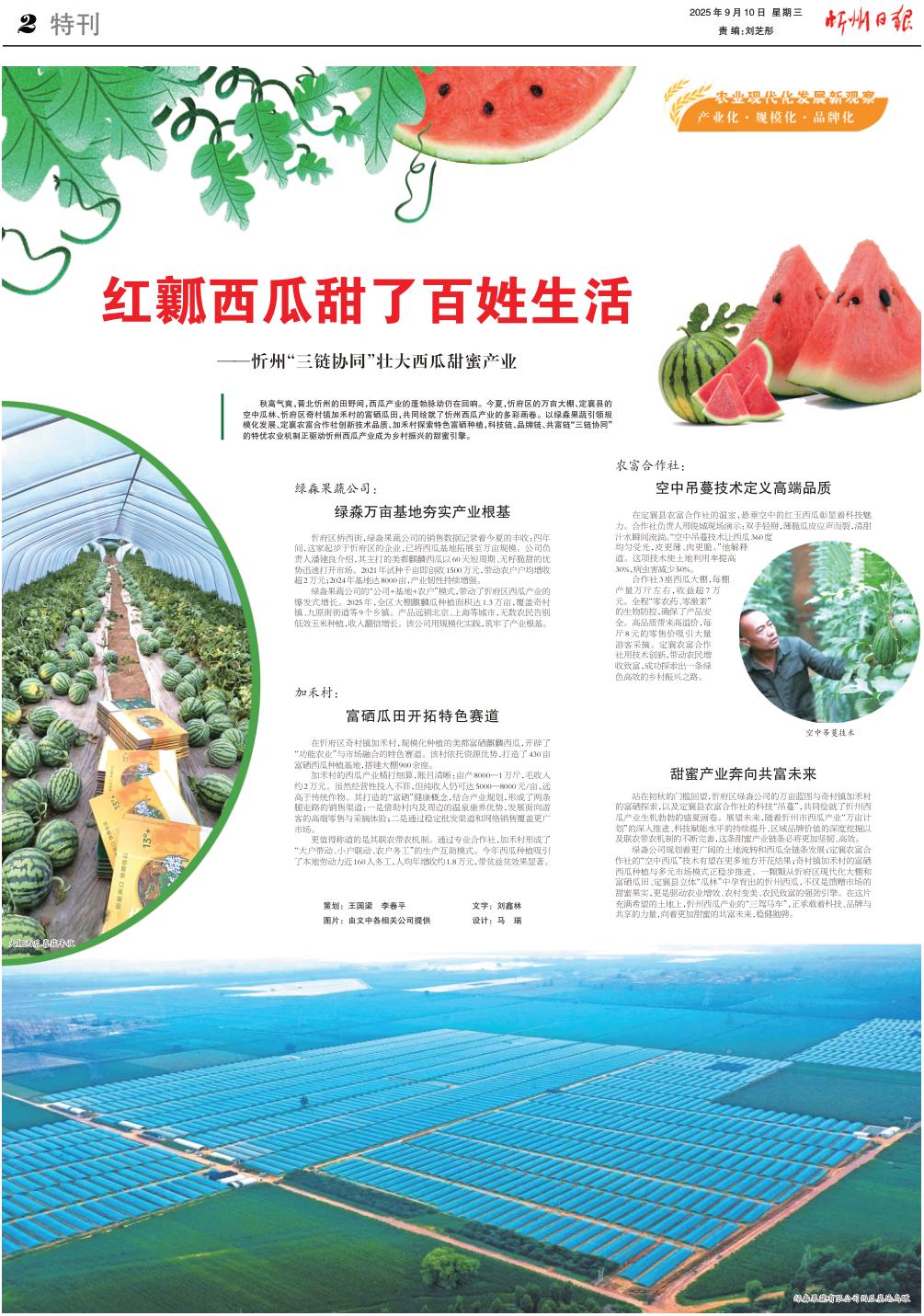 站在初秋的門檻回望,忻府區(qū)綠淼公司的萬畝藍(lán)圖與奇村鎮(zhèn)加禾村的富硒探索,以及定襄縣農(nóng)富合作社的科技“吊蔓”,共同繪就了忻州西瓜產(chǎn)業(yè)生機(jī)勃勃的盛夏畫卷。展望未來,隨著忻州市西瓜產(chǎn)業(yè)“萬畝計劃”的深入推進(jìn)、科技賦能水平的持續(xù)提升、區(qū)域品牌價值的深度挖掘以及聯(lián)農(nóng)帶農(nóng)機(jī)制的不斷完善,這條甜蜜產(chǎn)業(yè)鏈條必將更加堅韌、高效。