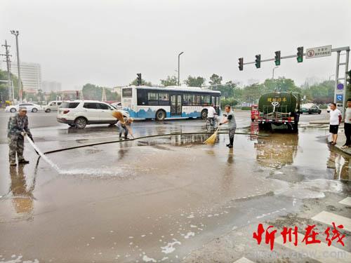 本報(bào)訊 7月7日,記者在我市城區(qū)和平街看到,一輛灑水車和5名環(huán)衛(wèi)工人正在給街道灑水。他們采用高壓水槍,按照由高到低、由里至外的順序?qū)Φ缆愤M(jìn)行沖洗。在沖洗過(guò)程中,工作人員井然有序,不放過(guò)任何一個(gè)死角,機(jī)器沖洗過(guò)再用掃帚反復(fù)清洗,相互協(xié)作,配合默契。經(jīng)過(guò)他們的精心洗刷,積淀已久的塵土和污漬被清理得干干凈凈,沖洗過(guò)后的街道恢復(fù)了整潔的面貌,煥然一新。同時(shí)為了安全起見,環(huán)衛(wèi)工人還將道路積水全部排入下水道。