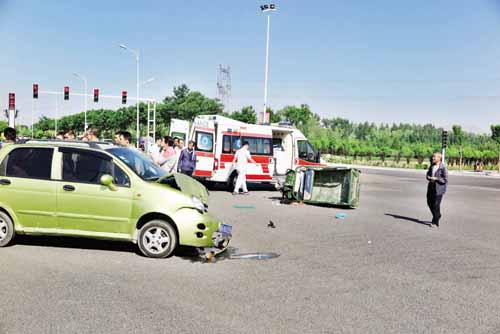 5月23日,在忻州市區(qū)梨花街與建設(shè)路口發(fā)生一起汽車與電動三輪車相撞事故。在此提醒廣大司機(jī)朋友及行人,遵守交通規(guī)則,注意行車安全,謹(jǐn)慎駕駛,必免事故發(fā)生。(張存良 攝)
