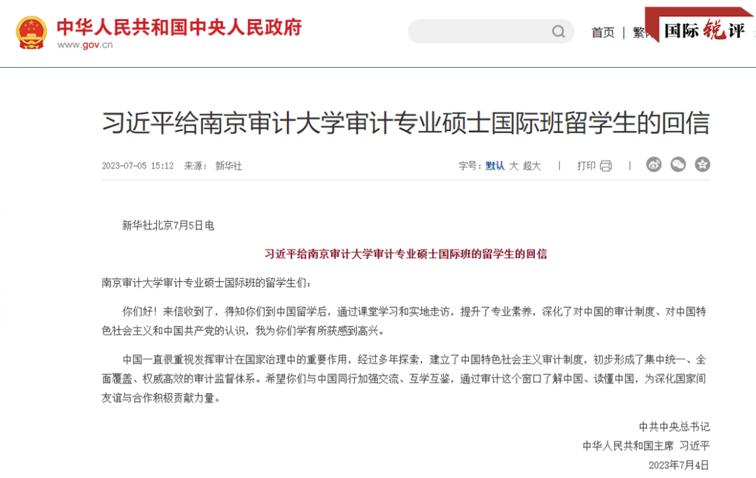 就在前一天,中國國家主席習(xí)近平給這個碩士國際班的留學(xué)生回信,鼓勵他們與中國同行加強交流、互學(xué)互鑒,通過審計這個窗口了解中國、讀懂中國,為深化國家間友誼與合作積極貢獻力量。這封回信讓吳娜班上的37位學(xué)生非常振奮。