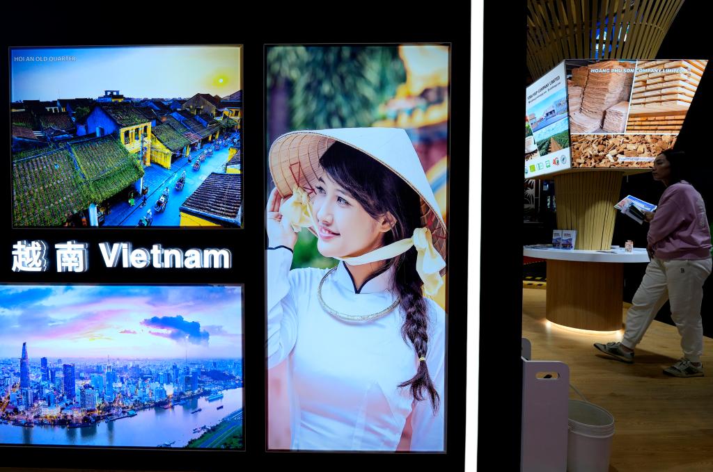 11月6日拍攝的第六屆進博會國家展越南展臺。新華社記者 張建松 攝 志同道合、命運與共是中越關(guān)系最鮮明的特征。兩黨兩國高層交往密切,像走親戚一樣常來常往,充分彰顯中越關(guān)系的高水平和特殊性。中越社會制度相同、理想信念相通,兩國關(guān)系理應(yīng)走在其他國家前面。當(dāng)前,中國貫徹落實中共二十大精神順利開局,越南加緊落實越共十三大決議,兩國社會主義事業(yè)都進入關(guān)鍵階段,都在奮力實現(xiàn)各自的奮斗目標(biāo)。去年10月,習(xí)近平總書記在北京會見阮富仲總書記時說,中越兩黨要堅持為人民謀幸福、為人類謀進步,全力推進社會主義現(xiàn)代化建設(shè),決不讓任何人干擾我們前進的步伐,決不讓任何勢力動搖我們發(fā)展的制度根基。展望未來,期待中越不斷鞏固政治互信,在國際舞臺上守望相助,在治國理政上交流互鑒,探索符合各自國情的現(xiàn)代化道路,攜手推進中越關(guān)系邁上新臺階。 作為經(jīng)濟上互利共贏的好伙伴,中越不斷深化在經(jīng)貿(mào)投資和基礎(chǔ)設(shè)施建設(shè)等領(lǐng)域的合作,取得豐碩成果。2022年,雙邊貿(mào)易額為2349.2億美元,中國連續(xù)多年是越南最大貿(mào)易伙伴,越南是中國在東盟最大貿(mào)易伙伴。中國對越南投資合作存量大、領(lǐng)域廣、增長快,中國企業(yè)在越南的投資切實提升當(dāng)?shù)孛癖姼l?。中企修建的河?nèi)輕軌2號線穿城而過,緩解沿線交通擁堵,成為城市新地標(biāo)。展望未來,期待中越雙方進一步加強共建“一帶一路”倡議與“兩廊一圈”戰(zhàn)略對接,推進兩國互聯(lián)互通,同時充分發(fā)揮兩國地緣相近、產(chǎn)業(yè)互補優(yōu)勢,深化經(jīng)貿(mào)、互聯(lián)互通、關(guān)鍵礦產(chǎn)等領(lǐng)域合作,共同打造互利共贏、穩(wěn)定暢通的產(chǎn)供鏈體系。