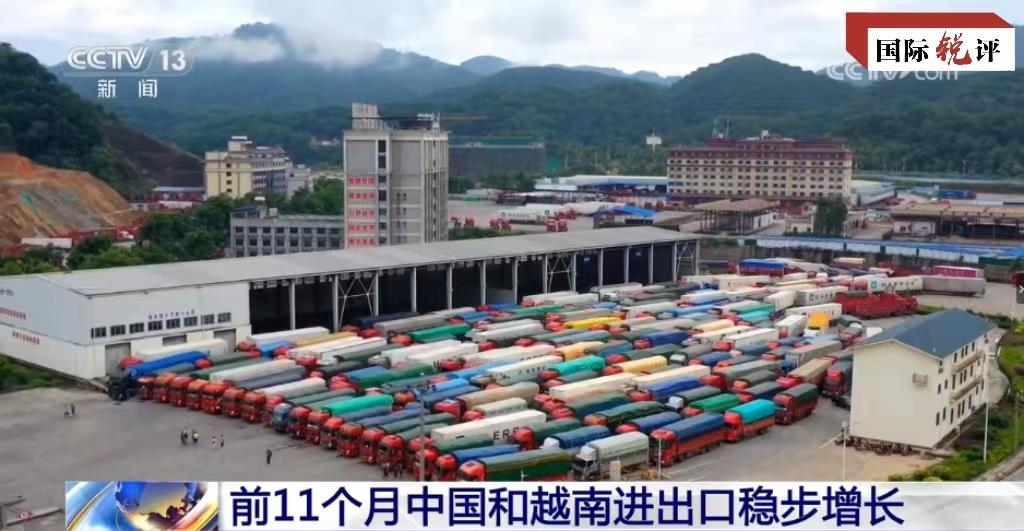 經(jīng)貿(mào)合作是中越關(guān)系的一大亮點(diǎn)。近些年,越南的火龍果、香蕉、榴蓮等優(yōu)質(zhì)農(nóng)產(chǎn)品走進(jìn)中國(guó)市場(chǎng),深受中國(guó)消費(fèi)者喜愛。河內(nèi)輕軌2號(hào)線、朔山垃圾發(fā)電廠、光伏產(chǎn)業(yè)合作……中企在越南參與實(shí)施的一系列項(xiàng)目,有力拉動(dòng)了當(dāng)?shù)亟?jīng)濟(jì)社會(huì)發(fā)展。數(shù)據(jù)顯示,中國(guó)連續(xù)16年成為越南最大貿(mào)易伙伴,越南是中國(guó)在東盟最大貿(mào)易伙伴和全球第四大貿(mào)易伙伴。今年前11個(gè)月,中越進(jìn)出口總值達(dá)1.45萬(wàn)億元人民幣,同比增長(zhǎng)3.6%。