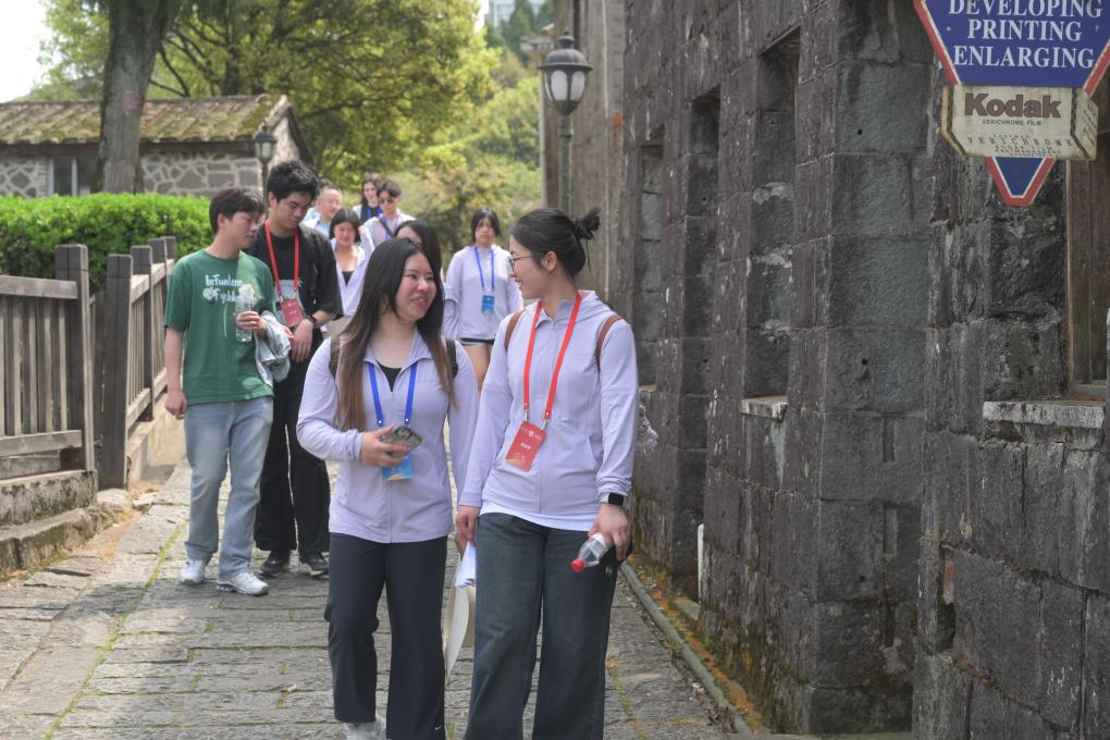 3月25日,福州大學(xué)外國語學(xué)院學(xué)生(前右)與美國太平洋大學(xué)學(xué)生(前左)在福州鼓嶺老街漫步交流。當(dāng)日,來自美國俄勒岡大學(xué)、布朗大學(xué)、奧斯威格高級中學(xué)等校的美國學(xué)生與福州大學(xué)學(xué)生齊聚福州鼓嶺,參加“讀懂中國 相約福建”友好交流活動。兩國青少年走訪鼓嶺老街、萬國公益社、柳杉王公園等,感受鼓嶺百年中外交融歷史風(fēng)貌,了解中美交往往事,暢談期待與希望,再續(xù)中美民間友好交往的“鼓嶺故事”。 新華社記者林善傳攝