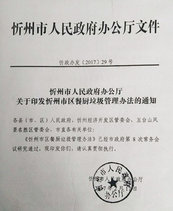 第一條 為加強(qiáng)餐廚垃圾管理,維護(hù)市區(qū)市容環(huán)境衛(wèi)生,促進(jìn)餐廚垃圾無(wú)害化處理和資源化利用,保障市民身體健康,根據(jù)《中華人民共和國(guó)固體廢物污染環(huán)境防治法》、國(guó)務(wù)院《城市市容和環(huán)境衛(wèi)生管理?xiàng)l例》、建設(shè)部《城市生活垃圾管理辦法》(建設(shè)部令2007年第157號(hào))、商務(wù)部《餐飲業(yè)經(jīng)營(yíng)管理辦法(試行)》(商務(wù)部令2014年第4號(hào))、《忻州市人民政府辦公廳關(guān)于印發(fā)忻州市區(qū)垃圾管理辦法的通知》(忻政辦發(fā)〔2014〕1號(hào))和《忻州市人民政府辦公廳關(guān)于印發(fā)忻州市區(qū)生活垃圾分類(lèi)管理實(shí)施辦法的通知》(忻政辦發(fā)〔2014〕134號(hào))等法規(guī)和規(guī)定,結(jié)合市區(qū)實(shí)際,制定本辦法。