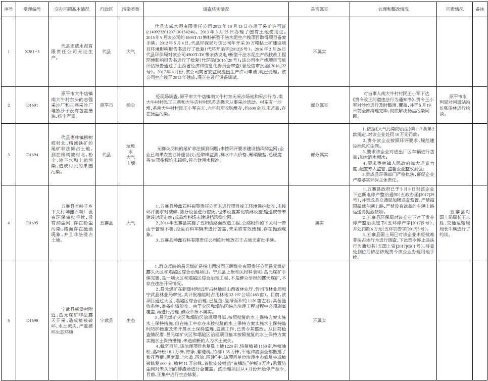 忻州市第十七批邊督邊改情況匯總表(截至5月18日)