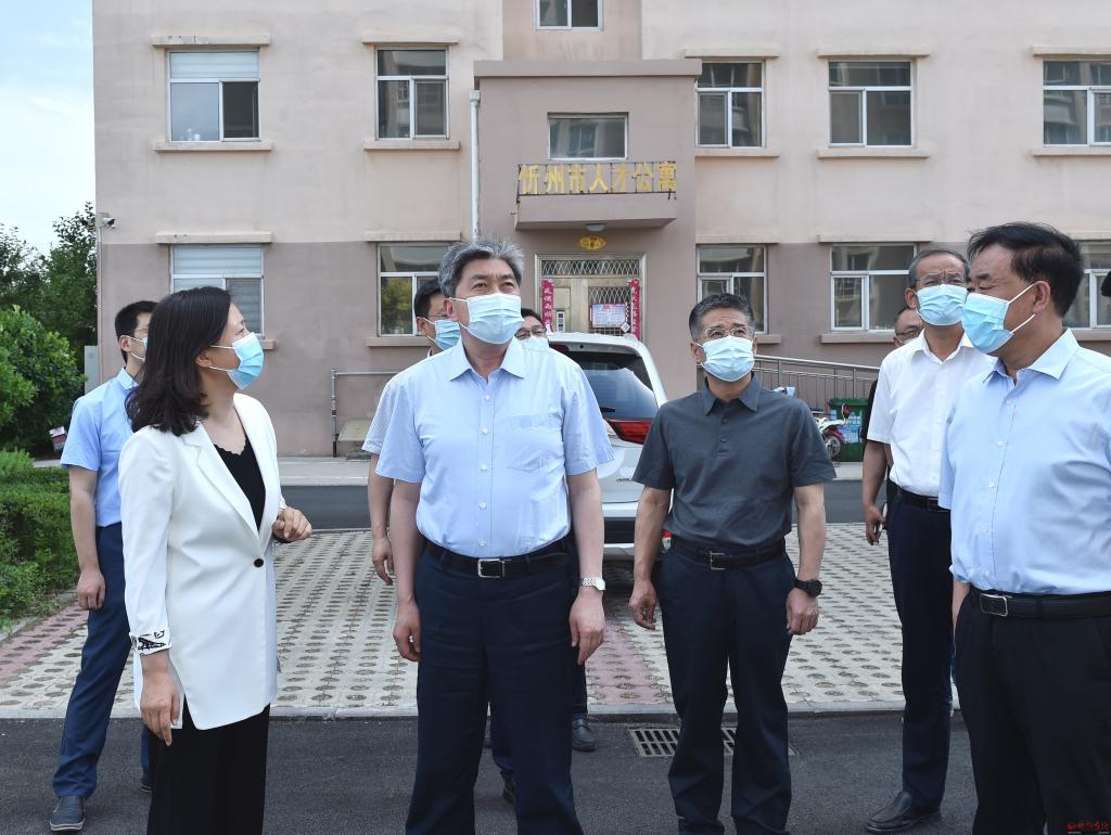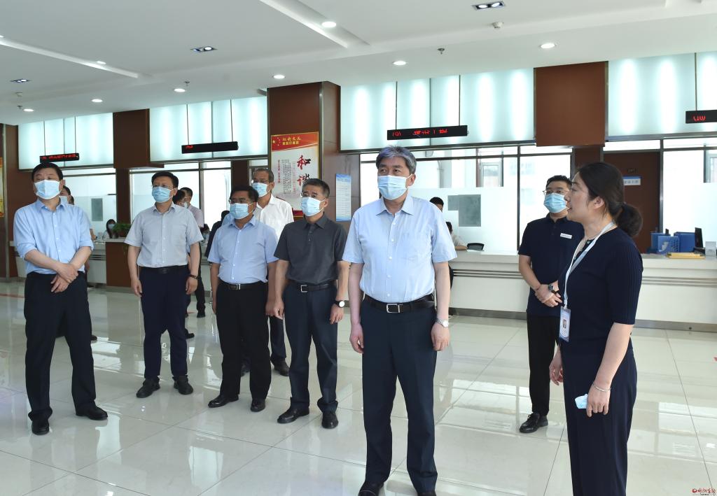 在開發(fā)區(qū)行政審批大廳。馮曉磊 攝 6月9日,圍繞扎實推動忻州經(jīng)濟開發(fā)區(qū)高質量發(fā)展,市委書記朱曉東深入開發(fā)區(qū)人才公寓、審批大廳、智創(chuàng)城以及標準化廠房建設工地調研。市領導劉卓良、張文偉、溫建軍、張敏、張宇光、羅志宏、王建峰參加。