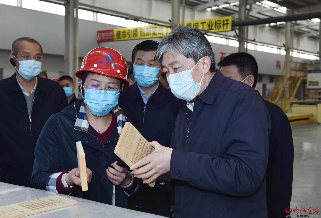 泰山石膏忻州有限公司產(chǎn)銷量均居同行業(yè)首位,被譽(yù)為中國紙面石膏板行業(yè)的領(lǐng)跑者。朱曉東深入企業(yè)車間宣講黨的二十屆二中全會(huì)和習(xí)近平總書記在全國兩會(huì)期間重要講話及全國兩會(huì)精神,聽取負(fù)責(zé)人工作匯報(bào),詳細(xì)了解項(xiàng)目建設(shè)、企業(yè)生產(chǎn)經(jīng)營、產(chǎn)品研發(fā)、安全生產(chǎn)等方面的情況。他指出,要把學(xué)習(xí)貫徹黨的二十屆二中全會(huì)精神與學(xué)習(xí)宣傳貫徹黨的二十大精神結(jié)合起來,與貫徹落實(shí)全國兩會(huì)精神結(jié)合起來,在學(xué)深悟透、宣講培訓(xùn)、知行合一上持續(xù)用力,深刻理解和準(zhǔn)確把握習(xí)近平總書記關(guān)于“牢牢把握高質(zhì)量發(fā)展這個(gè)首要任務(wù)”和“四個(gè)必須”的重要論述,深入落實(shí)“三個(gè)更好統(tǒng)籌”,確保黨的二十大精神在忻州落地生根、開花結(jié)果。