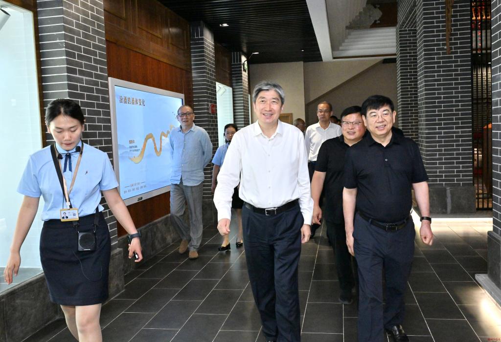 在中國汾酒城,朱曉東一行登上西城樓,俯瞰酒城全貌,聽取汾酒城的建設規(guī)模、生產(chǎn)經(jīng)營、產(chǎn)品銷售等情況介紹。隨后,朱曉東一行走進汾酒博物館,通過館陳文物、文獻史料、文人墨寶等,切身感受汾酒集團的企業(yè)文化,了解企業(yè)歷史沿革、技術(shù)創(chuàng)新及汾酒的釀造技藝等情況。