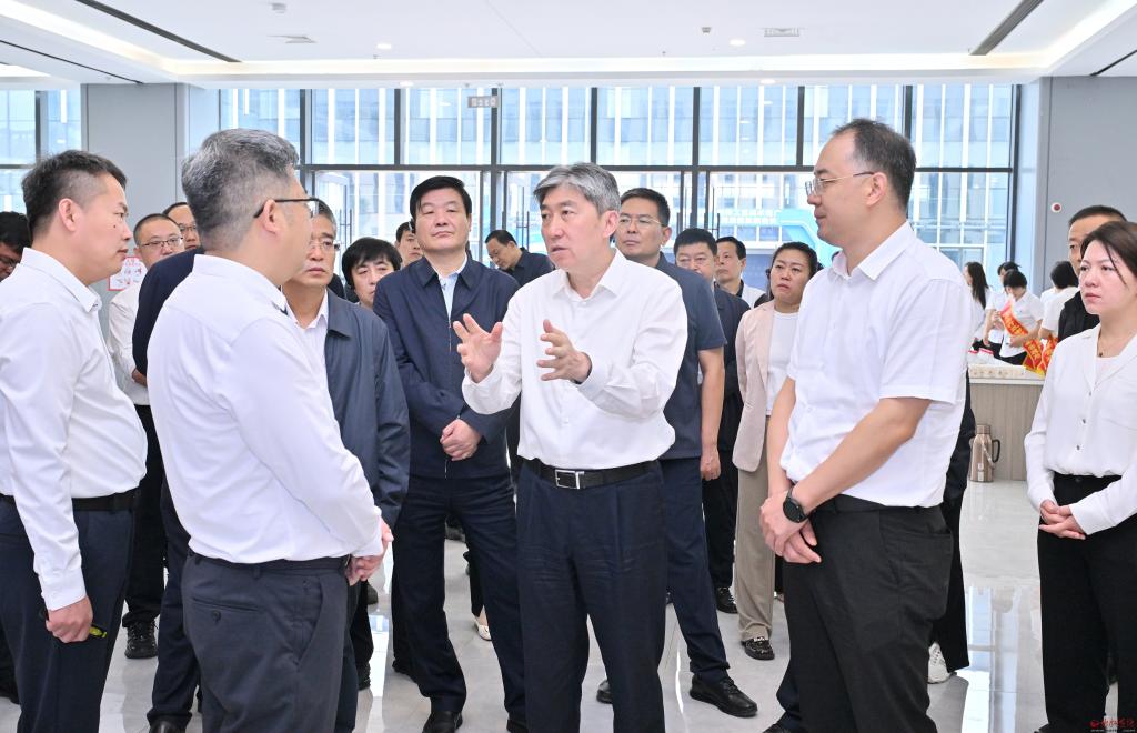 在定襄縣鍛造產(chǎn)業(yè)服務(wù)基地觀摩檢查法蘭專業(yè)鎮(zhèn)大數(shù)據(jù)綜合服務(wù)平臺項(xiàng)目情況。攝影馮曉磊