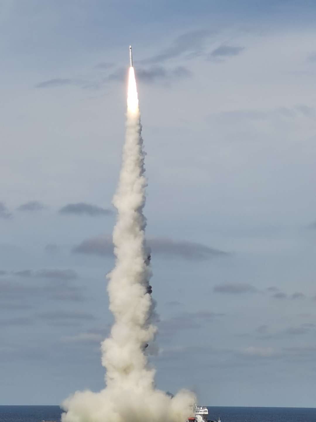 9月15日,長征十一號(hào)運(yùn)載火箭在黃海海域,“一箭九星”發(fā)射成功(王偉童 攝)