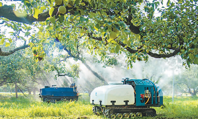 安徽省宿州市碭山縣近年大力推廣“人工智能+數(shù)字果園”模式,推動碭山酥梨產(chǎn)業(yè)智能化、數(shù)字化轉(zhuǎn)型,為鄉(xiāng)村振興和數(shù)字鄉(xiāng)村建設夯實基礎。圖為碭山縣一家果園內(nèi),果園機器人在噴施生物農(nóng)藥。崔 猛攝(人民視覺)