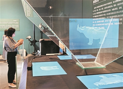 在“數(shù)說犀尊”展覽上,展廳綜合運(yùn)用了高清三維掃描、超高清顯示、人工智能、紅外感應(yīng)、增強(qiáng)現(xiàn)實(shí)等科技手段展示文物研究成果。科技日?qǐng)?bào)記者 洪星攝