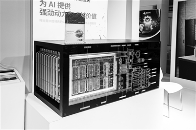 中國(guó)國(guó)際消費(fèi)電子博覽會(huì)上展出的曙光異構(gòu)智能液冷計(jì)算機(jī)演示模型。